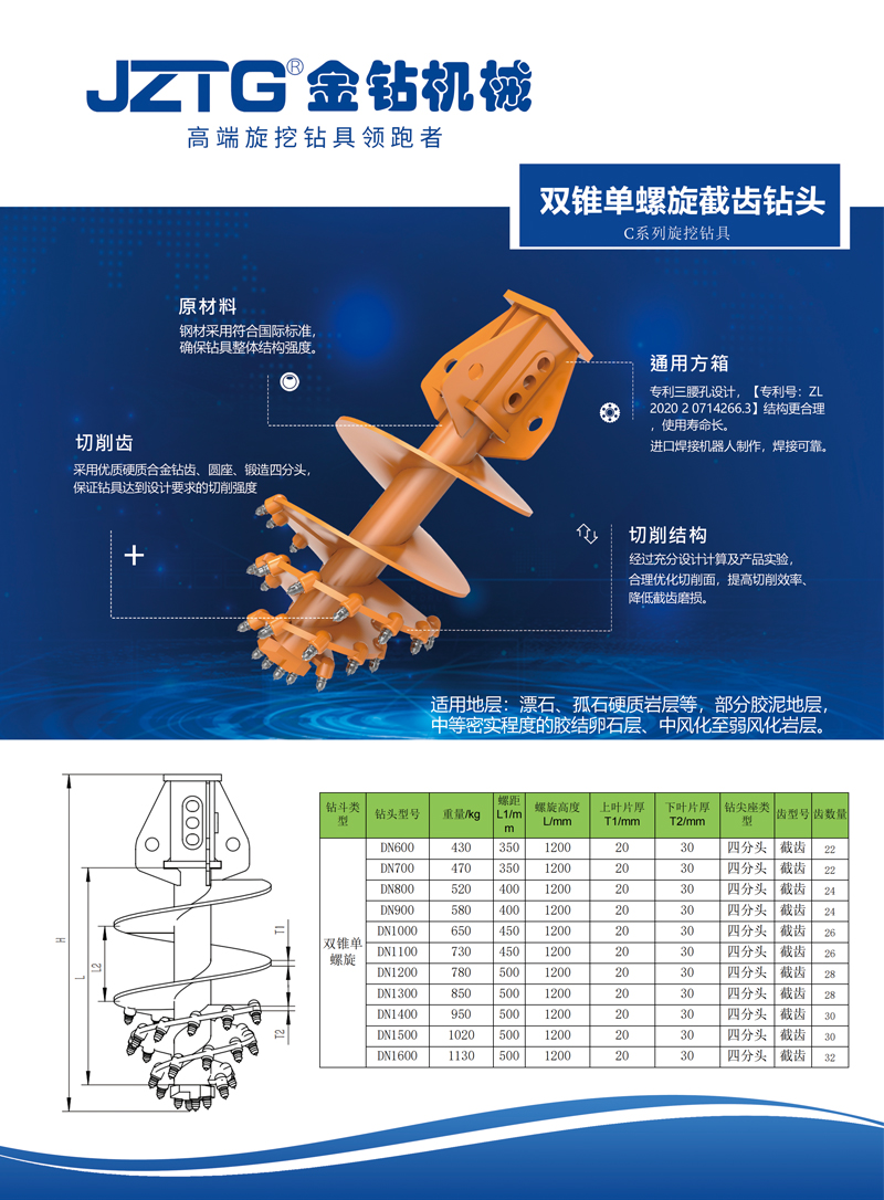 - 產(chǎn)品名稱:雙錐單螺旋截齒鉆斗
